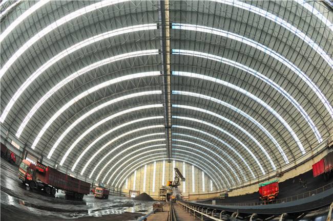 堆场料场封闭式主体结构为新型的钢怀柔网架结构,维修结构为怀柔钢结构怀柔不锈钢板和纤维增强塑料灯具,其外形以怀柔网架式和平板为主,连接柱怀柔施工自由,设置喷雾自动喷水系统,从而可以实现棚内所有物料的覆盖,减少物料在运输过程中的损耗,起到防尘的作用,减少工厂关闭后的二氧化硫排放量,50mg/m3颗粒排放量小于10mg/m3,非常适合低能耗。低闭库自动感应反应对库存轮胎进行清洁,确保轮胎不受道路污染;封闭的储存区可从源头控制粉尘污染,控制无序排放。